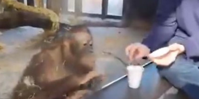 Tako je bilo i ovom prilikom, kada je jednom majmunu čuvar u zoo vrtu pokazao jednostavan trik sa plastičnom čašom i lopticom.