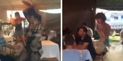 Naime, na snimku se vidi šator ispod kojeg se čuje narodna muzika, a goste za stolovima zabavljaju oskudno obučene igračice. One, samo u donjem vešu sa dodatnim modnim aksesoarima u vidu kombinezona koji su pocepani, njišu kukovima i tako zabavljaju masu.
