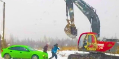 KARMA JE KUČKA! Besni momci u besnim kolima počeli su da maltretiraju radnika u rovokopaču! A onda je... MORATE DA POGLEDATE! (VIDEO)