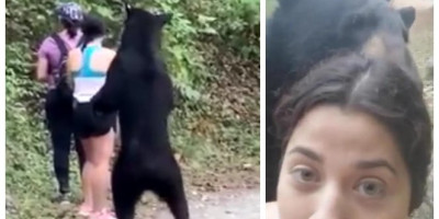 Na snimku koji je zabeležila grupa planinara u Meksiku se vidi kako tri žene stoje mirno dok crni medved prilazi jednoj od njih, podiže se na zadnje noge i radoznalo je njuška.