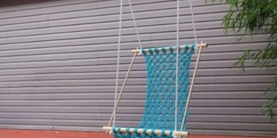 22. Sada možete okačiti ležaljku na željeno mesto na terasi ili dvorištu. Podesite čvorove kako bi ležaljka stajala ravno i zategnite ih. Isecite višak kanapa sa čvorova ili raspletite kanap u rese. Oprezno sedite prvi put jer će se kanapi malo rastegnuti.