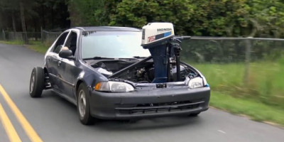Upravo to je i bio slučaj sa jednom Hondom Civic pete generacije, iz koje je izvađen benzinac zapremina 1,6 litara, a umesto njega ubačen drugi Hondin motor. Dobro ste videli, u pitanju je vanbrodski motor koji je sada zadužen za pokretanje ovog Civica!