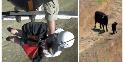 Dok helikopter lebdi iznad mesta vidi se kako krava ljutito mlati glavom i muče dok tele stoji pored. Policija je uspela da udalji kravu od ljudi oglašavajući sirenu za uzbunu na helikopteru, napisali su na Fejsbuku. Zatim je par podignut 23 metra u vazduh do helikoptera i prebačen u bolnicu da im se zbrinu povrede. Nije rečeno šta se desilo sa kravom i njenim teletom.