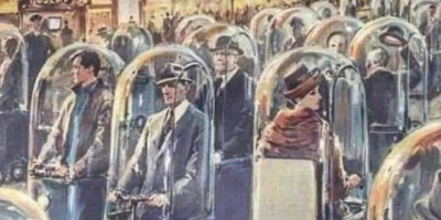 Nova teorija zavere: na društvenim mrežama kruži slika iz italijanskog časopisa koji je, navodno, objavljen 1962. godine i pokazuje kako će ljudi 2022. godine, uz socijalno distanciranje, ići na posao.