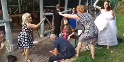 Snimak ruske svadbe je poput komplikovanog matematičkog zadataka. Nije najasnije ko je započeo tuču među gostima, ali u borbi za "bolji" život mladenaca svi su se uključili.