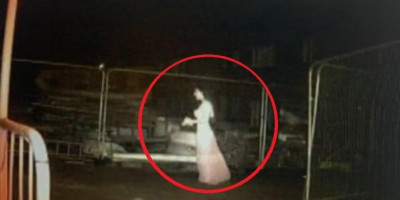Naime, kamera koja ima senzor za pokret, "upalila se" u 1.53 ujutro i snimila "providnu" ženu u belom koja drži nešto u rukama i kreće se s kraja na kraj gradilišta.