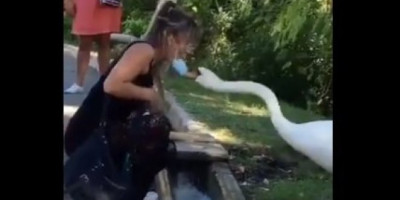 Video koji je vrlo brzo postao viralan na društvenim mrežama i broji na milione pregleda, pokazuje ženu u Francuskoj koja je prišla labudu sa maskom oko vrata, ali joj je on ubrzo pokazao kako se zapravo nosi maska, tako što joj je uz pomoć kljuna brzo namestio na lice.
