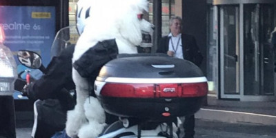 Na zadnjem sedištu skutera, zajedno sa svojim vlasnikom, provozala se bela pudla. Kao da nije privukla dovoljno pažnje svojom fascinantnom veštinom bajkera, pudla je na glavi nosila roze naočare za sunce, kako joj ne bi smetao vetar, ali i da joj mušice ne bi upadale u oči tokom vožnje.