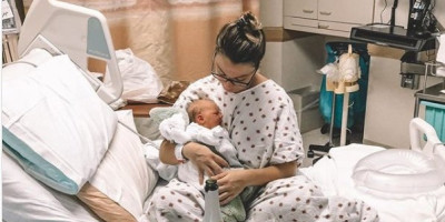 Mama Emili živi na Havajima, a u julu ove godine je rodila drugu bebu. Ona je nakon proođaja objavila fotografiju iz bolničke sobe, na kojoj je pozirala sa bebom u rukama ispred bogate bolničke gozbe.