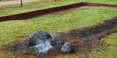 Naime, brzinom munje društvenim mrežama su se proširile slike na kojima se video kamen koji je sleteo u dvorište, uz opis da je reč o "čudnom svemirskom sletanju" i da se verovatno radi o meteoru.