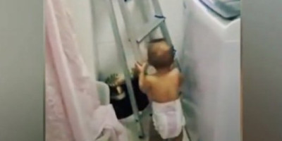 Njena majka, Sara Fereira (35) bila je kod kuće kada je videla ćerku kako privlači merdevine do zida, a potom se, obučena samo u pelenu, penje na njih kao pravi profesionalac.