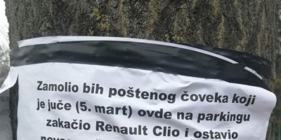I možda bi to sve to prošlo nezapaženo u široj javnosti, da se i sa druge strane nije našao jedan sličan vozač. Na oglasu koji je zalepljen u gradu, napisao je da se javi onaj koji je ostavio novac kako bi mu isti vratio jer je, kako kaže, 90 odsto oštećenja nastalo pre ovog sudara na parkingu.