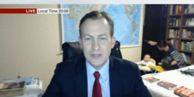 Dok se Keli iz svog doma uključio uživo u program BBC, putem web-kamere, u sobu je ušetala najpre njegova devojčica, a zatim i beba u šetalici.
