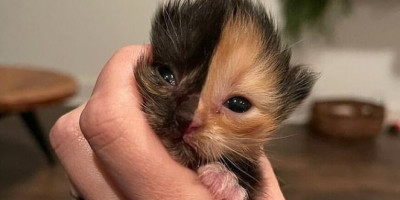 Ono što je sve oduševilo je glava malene Kajsije, kod koje je polovina dlake crna, a druga smeđa. Najzanimljivije je to što je linija koja deli ove dve boje na glavi mačeta toliko prava, kao da je povučena lenjirom.