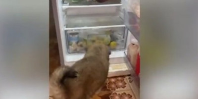 Snimak koji je obišao društvene mreže pokazuje štene zlatnog retrivera kako otvara vrata frižidera, a potom se penje i smešta na jednu od polica, kako bi našao spas od vrućina.