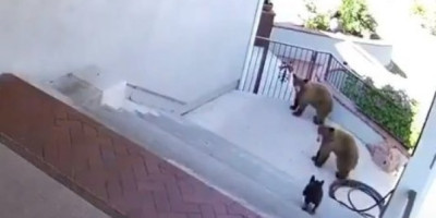 Dva mečeta našla su se u dvorištu jedne kuće. I dok su oni tako istraživali da li možda u okolini postoji neka košnica sa medom, na stepenicama se pojavio čuvar kuće - mali pas.
