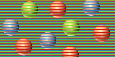 A three-color confetti illusion with spheres, which appear to be yellowish, reddish, and purpleish but in fact have exactly the same light-brown base color (RGB 255,188,144). Shrinking the image increases the effect. Original png file is at https://t.co/6r2PMbLMJc. pic.twitter.com/ro1zpVxLm2