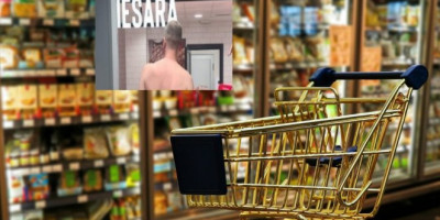 Mladić se sa korpom u rukama uputio ka mesari u okviru marketa, a šta je tačno kupio ovako "odeven" nismo uspeli da zabeležimo.