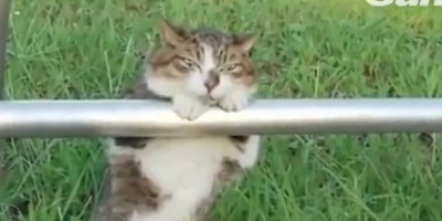 Na internetu se pojavio snimak mačke koja sedi pored ograde kraj puta i podseća kao na bilo kog drugog čoveka.