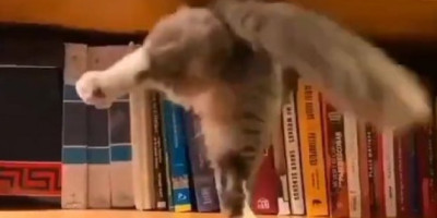 Slučaj jedne mačke nasmejao je sve korsnike interneta jer je pokušala da se provuče kroz policu za knjige.