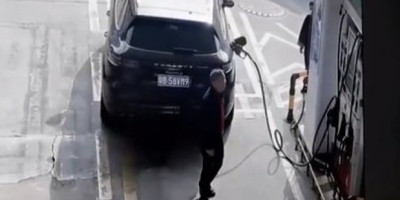 Dok je čovek točio gorivo, a njegova saputnica bila u "poršeu", jedan muškarac prišao je vozilu, izvukao točilicu i zapalio je!
