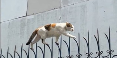 Mačka se popela na ogradu, koja je imala oštre ivice, a onda je hodala po njima kao da hoda po ravnoj površini.