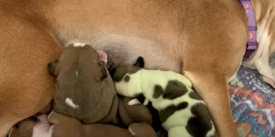 Kada su uzeli da očiste svog buldoga i štence primetili su da se Freja čudno ponaša, a ubrzo su shvatili da dolazi još jedno štene.