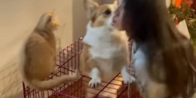 Na Internetu smo naišli na snimak malenog korgija, koji se isprečio između devojke i mačke.