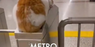 Poznato je već da mačke umeju da spavaju na raznim mestima, ali da li ste znali da im se baš dopada mesto prolaza gde treba da se provuku kartice prilikom odlaska na voz?