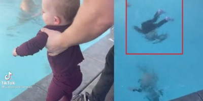 Beba u prvi mah pokušava da izroni iz vode, ali nastavlja da se davi, da bi u jednom momentu uspela totalno da ispliva. Pored bebe se nalazi još jedna žena koja se smeje celom prizoru, međutim korisnicima interneta ovaj snimak nije bio smešan.