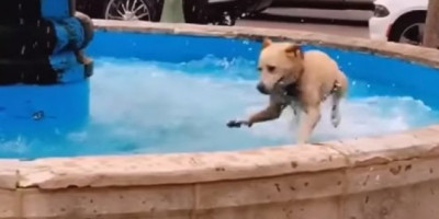 Zapravo, kako je počelo lepo vreme, ovaj pas je procenio da je sasvim u redu da se malo rashladi i to ni manje ni više nego u fontani.