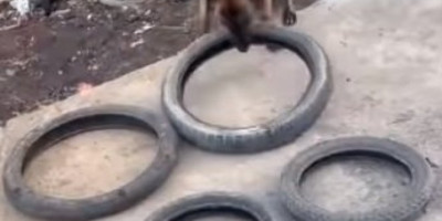 Sumnjamo da je na ovom snimku na koji smo naišli, treniran pas, tačnije da su ga spremali baš za nošenje guma.