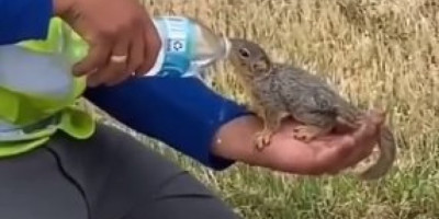 Jedan radnik je snimljen kako na nežan način, veoma pažljivo jednoj slatkoj, maloj veverici daje vodu iz flašice.