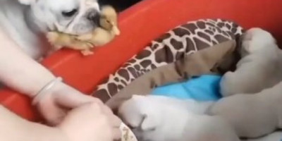 Ona je donela pile, stavila ga u korpicu sa štencima, a ono je odmah potrčalo po hranu i krenulo da jede.