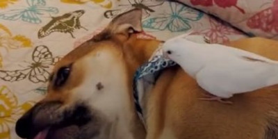 U njegovoj porodici nalazi se i jedan pas, po imenu Meda, koji je papagaju postao kao "rođeni brat".