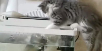 Ona se približila akvarijumu, pa čak i počela da hoda po njemu, pružajući šapicu ka ribi koja se nalazila unutra. Međutim, ono što nije očekivala, jeste da će riba pružiti valjani otpor.