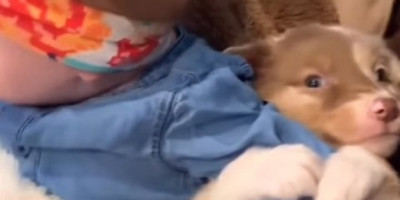 On je bukvalno zagrlio bebinu ruku i umiljavao joj se, dok je malena s vremena na vreme češkala psa.
