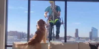 Naime, jedan zlatni retriver se svaki put veoma kulturno javi peraču prozora i to uz poklon koji mu donese.