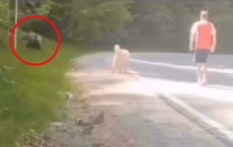 Kada se medved spustio na put, pas je iskočio pred njega, ne dozvoljavajući mu da se približi vlasniku.
