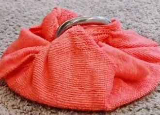 Krpu dobro iscedite, zamotajte na poklopac i potom ribajte tepih.