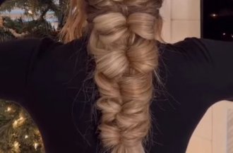 Potrebno je da malo uvijete kosu, a zatim da uzimate po jedan spoljašnji pramen, koji ćete vezati iza glave i prevrnuti ka unutra. Tako radite i sa ostalim pramenovima, dok iskoristite svu kosu. U toku vezivanja je malo razbarušite, kako bi imala veći volumen.