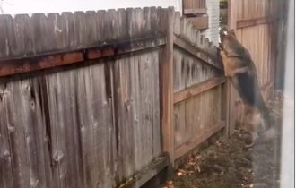 Snimak na koji smo naišli pokazuje kako veverica juri levo desno, po drvenoj ogradi, dok je pas u stopu prati, pokušavajući da je uhvati.