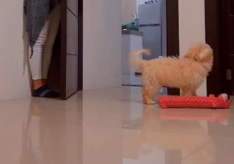 Ona mu je bacila kosku, a kada je potrčao po nju, sakrila se iza vrata. Psić je dotrčao nazad, pun nade, ali nije mogao da je nađe.