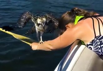 Dok su uživali u svom čamcu na jezeru, jedan bračni par je primetio da orao ribar pluta u vodi. Tako umoran i natopljen vodom, bez mogućnosti da poleti, bio je u opasnosti od davljenja.