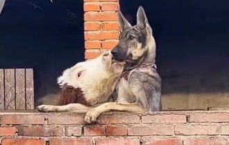 Ovaj put smo naišli na presladak snimak na kojem jedna kravica nikako ne može da se odvoji od psa. Konstantno ga je ljubila i gledala, a on se ipak držao malo hladnije, mada je i on uzvraćao poljupce s vremena na vreme.