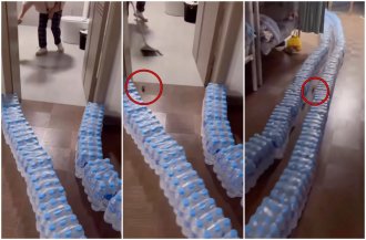 Od paketa flaša, napravila je "puteljak", miša isterala metlom iz wc-a, a onda je on samo pratio put do izlaznih vrata.