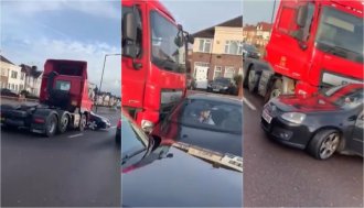 Ostali vozači su mu trubili u pokušaju da ga zaustave, a kada su uspeli u nameri, vozač kamiona je bio potpuno zbunjen. Nije znao zbog čega mu svi trube, a kada je shvatio i sam je ostao u čudu: