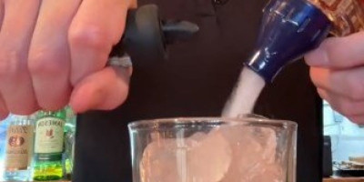 Na ovom snimku, on pokazuje kako zapravo u čašu punu leda, sipa samo sodu, a potom i malo crvene boje, kako bi ličilo na alkohol.