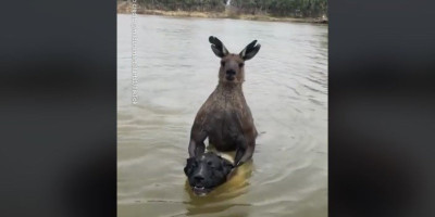 Pokušao je da uplaši kengura, koji se nije ni trgnuo zbog njegovog pokušaja, a nakon što je uzviknuo "pusti mog psa", kengur ga je udario svom snagom, a čovek je pao u vodu.