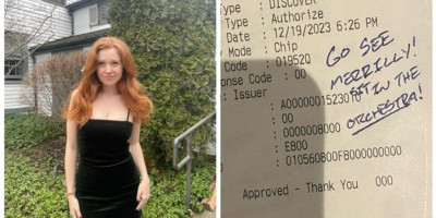 Objavila je fotografiju računa koji je iznosio 232.86 dolara (oko 212 eura) na kom je bila ispisana napojnica od 500 dolara (456 evra) i poruka: "Idi da pogledaš "Merrily"!"